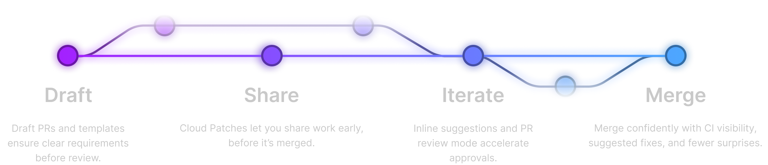 Merge confidently with CI visibility, suggested fixes, and fewer surprises.